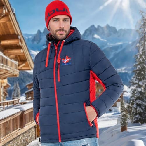 Die applizierte Norwegen-Flagge und die Absteppungen verleihen der Jacke einen stilvoll legeren Look.