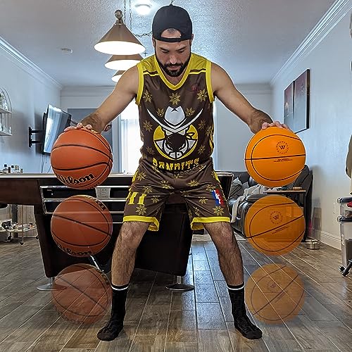 🏀 FOAM – Our silent basketball is airless and maintains its shape and silent bounce on various surfaces due to its custom foam material, designed to mimic the feel of a leather basketball.